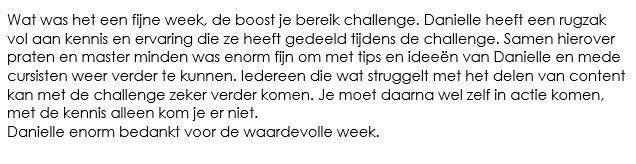 Daarnaast werken we ook aan jouw mindset. Want een van de grootste stoorzenders ben je vaak zelf. Jouw angst om gezien te worden zorgt ervoor dat je content te voorzichtig wordt en daardoor ziet helemaal niemand het. Jouw angst voor negative reacties zorgt ervoor dat je helemaal geen reacties krijgt. En zo zijn er nog meer content-issues die uiteindelijk alles te maken hebben met jou mindset en zelfvertrouwen.  Â